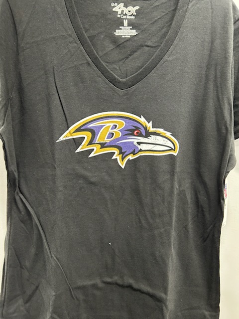 / Baltimore Ravens Ladies S/S Black V- neck top ( Primary Logo)