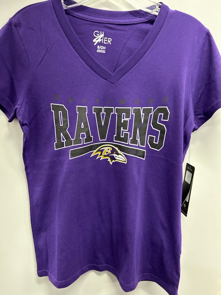 Baltimore Ravens Purple V Neck S/S Top ( Printed Logo)